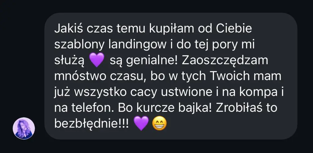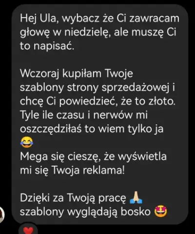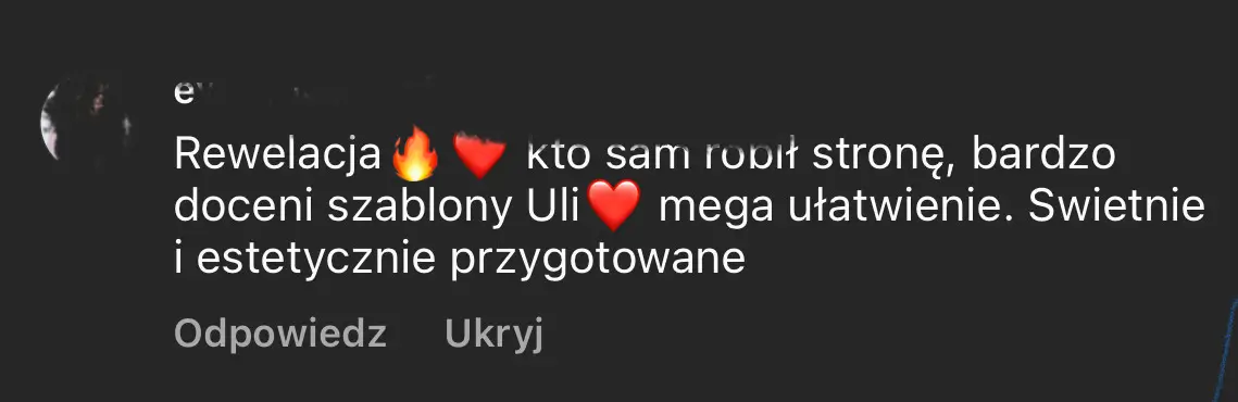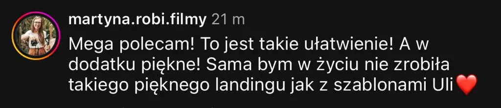 Wspieram kobiety, które chcą sprzedawać swoje produkty online, ale gubią się w kwestiach technicznych. Dzięki moim szablonom mogą wreszcie pokazać światu swoją ofertę i skupić się na tym, co robią najlepiej.