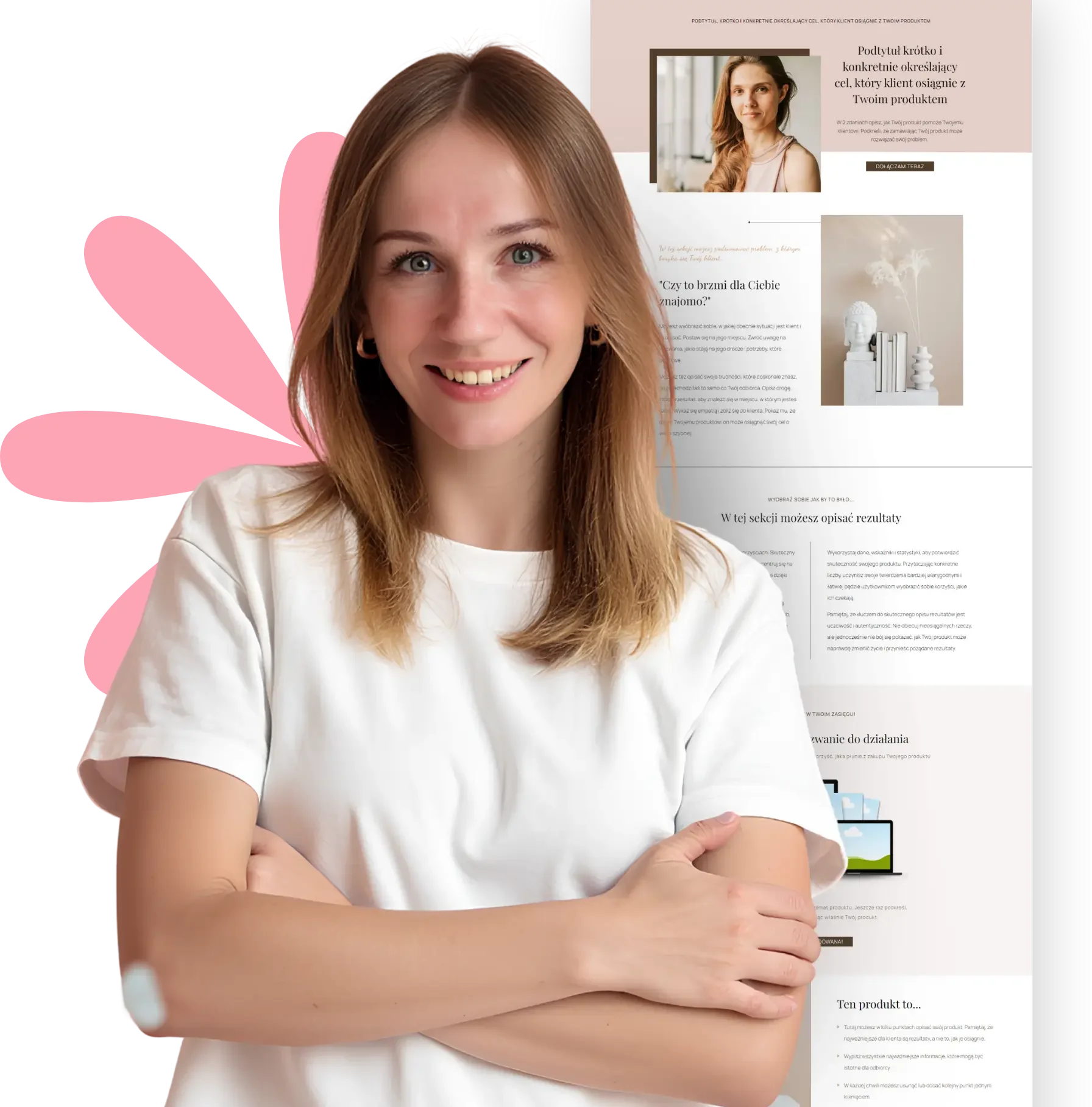 Wgraj gotowe szablony landing page, podmień teksty i uruchom stronę sprzedażową sama w ciągu godziny, nawet jeśli nigdy wcześniej nie edytowałaś samodzielnie swojej strony w WordPressie.